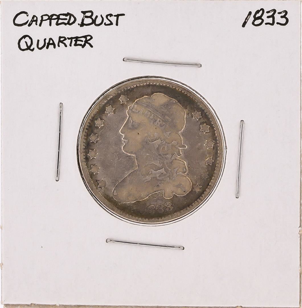 One 1833 Capped Bust Quarter Silver Coin.