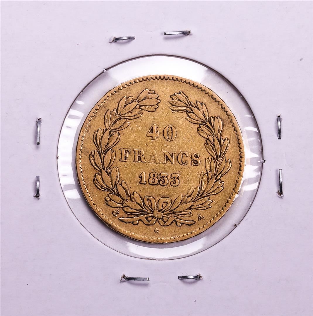 One 1833 France 40 Francs Louis Philippe I Gold Coin.