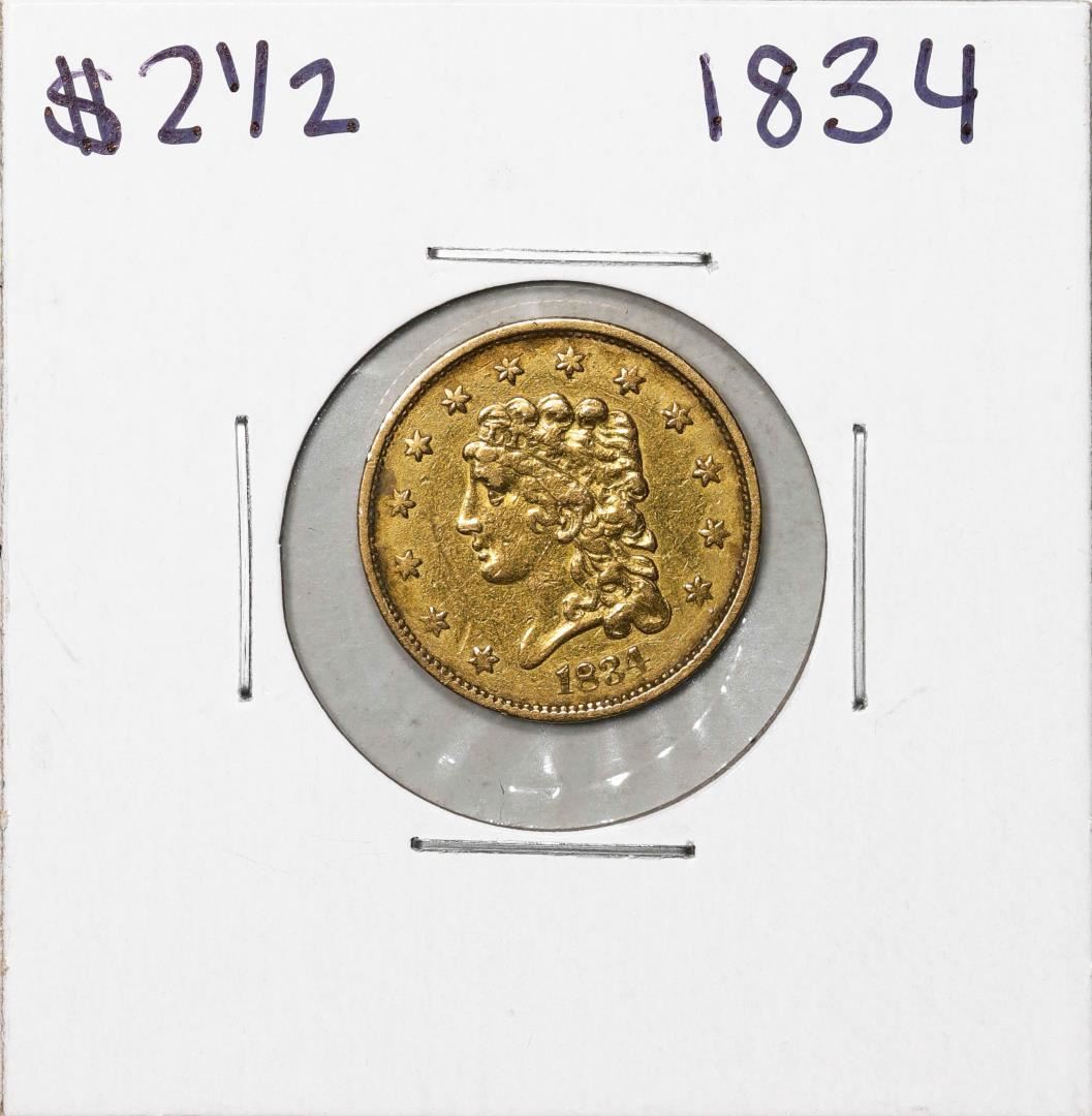 One 1834 $2 1/2 Classic Head Quarter Eagle Gold Coin.