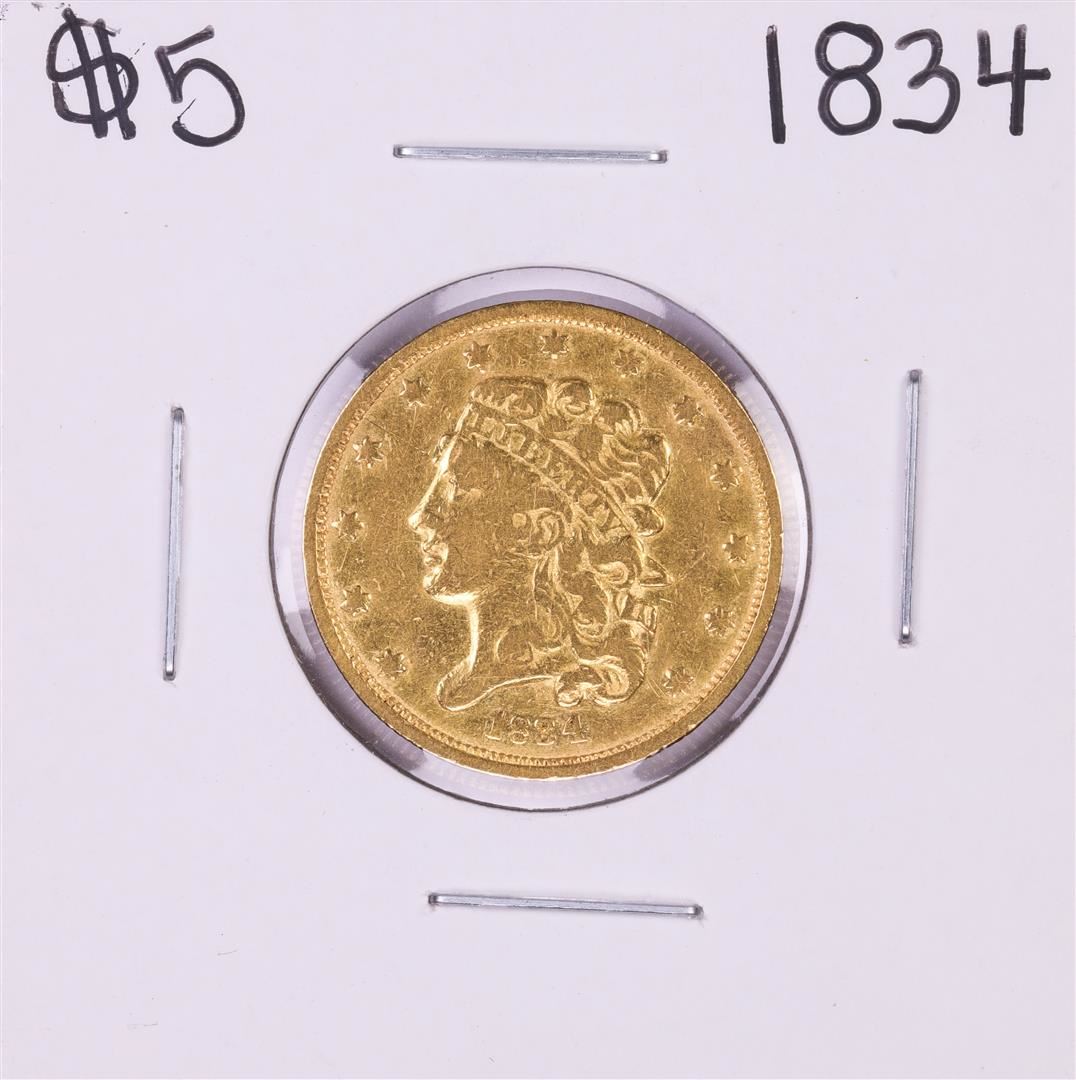 One 1834 $5 Classic Head Half Eagle Gold Coin.