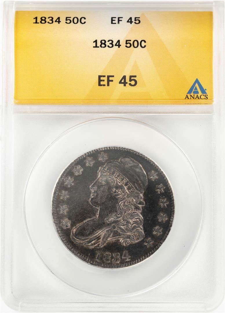One 1834 Capped Bust Half Dollar Coin ANACS XF45. ANACS Certified.