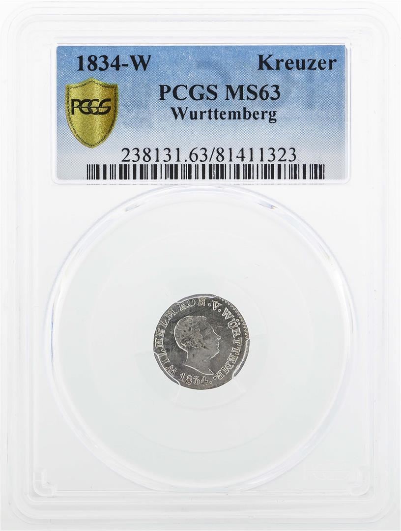 One 1834 Wurttemberg 1 Kreuzer Coin PCGS MS63. PCGS Graded.