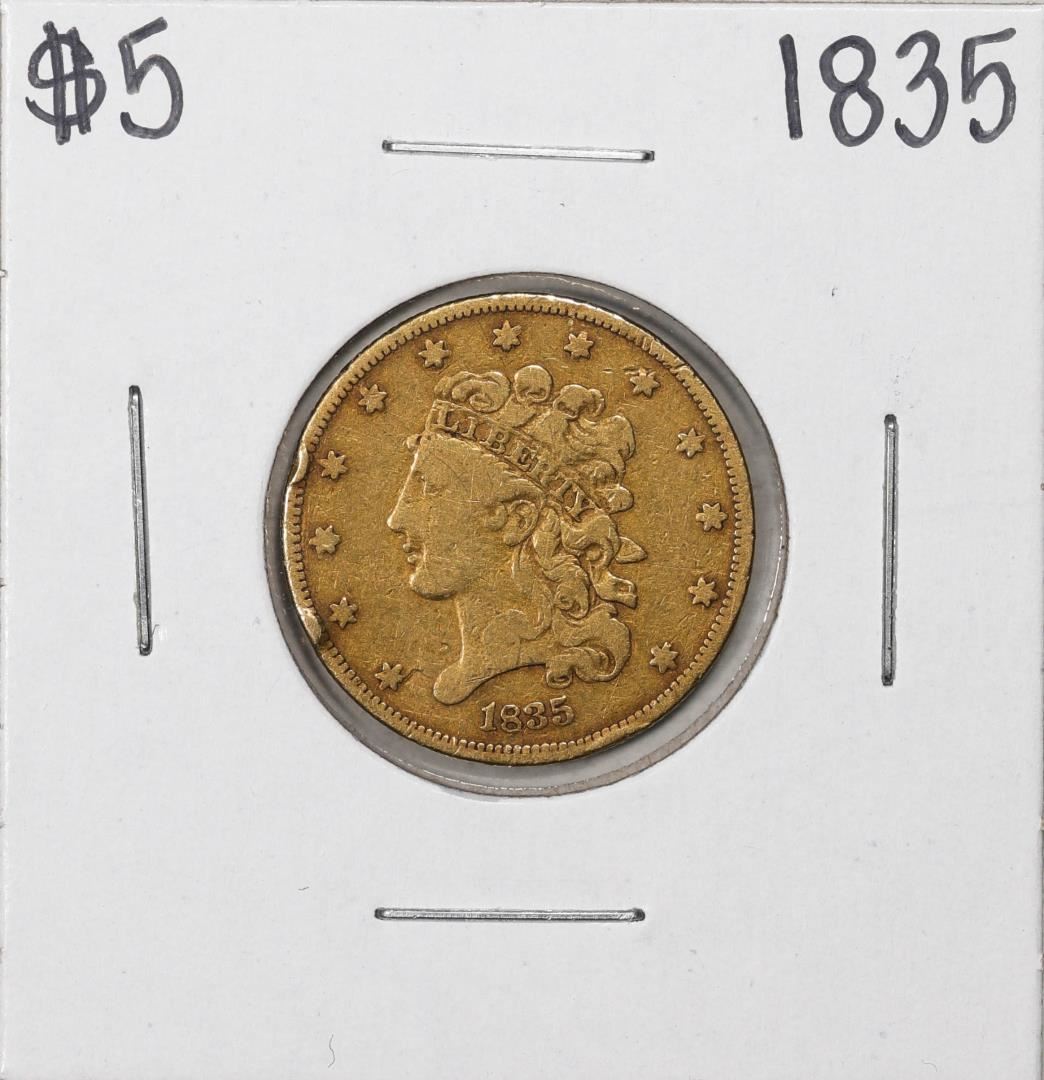 One 1835 $5 Classic Head Half Eagle Gold Coin.