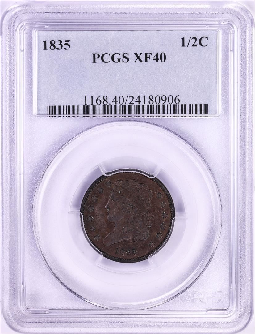 One 1835 Braided Hair Half Cent Coin PCGS XF40. PCGS Graded.