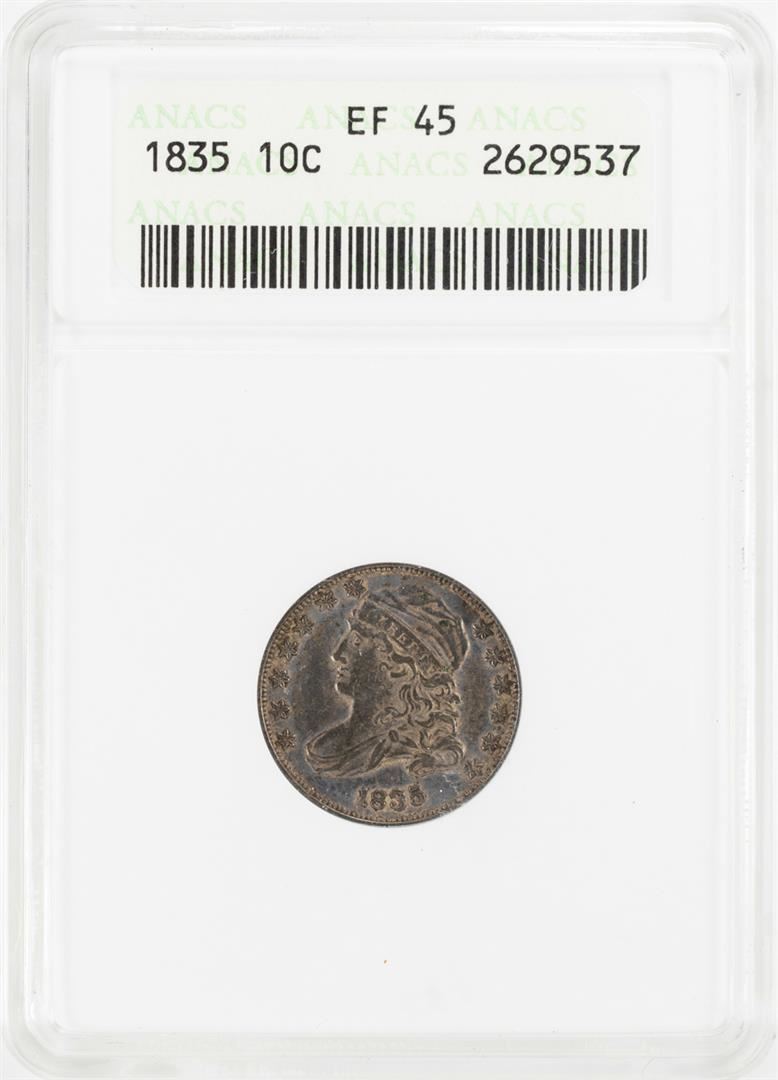 One 1835 Capped Bust Dime Coin ANACS XF45. ANACS Certified.