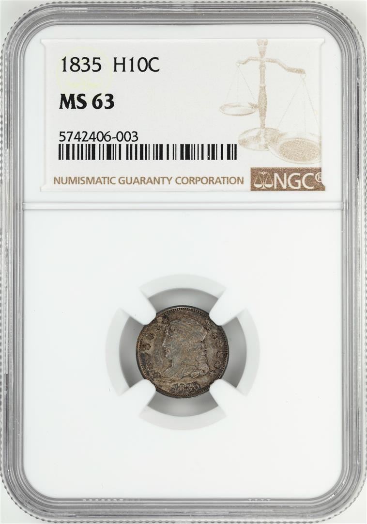 One 1835 Capped Bust Half Dime Coin NGC MS63. NGC Certified.