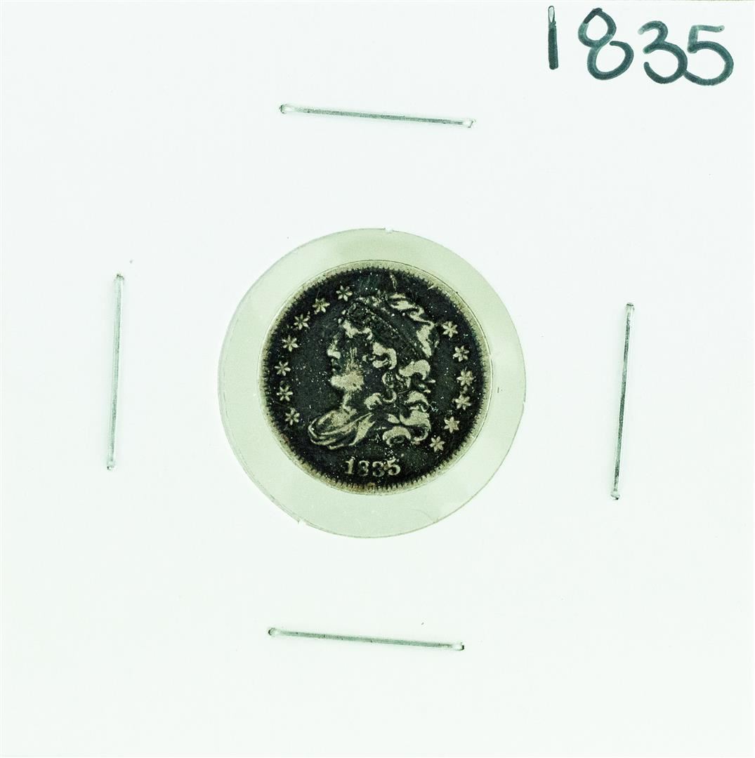 One 1835 Capped Bust Half Dime Coin.