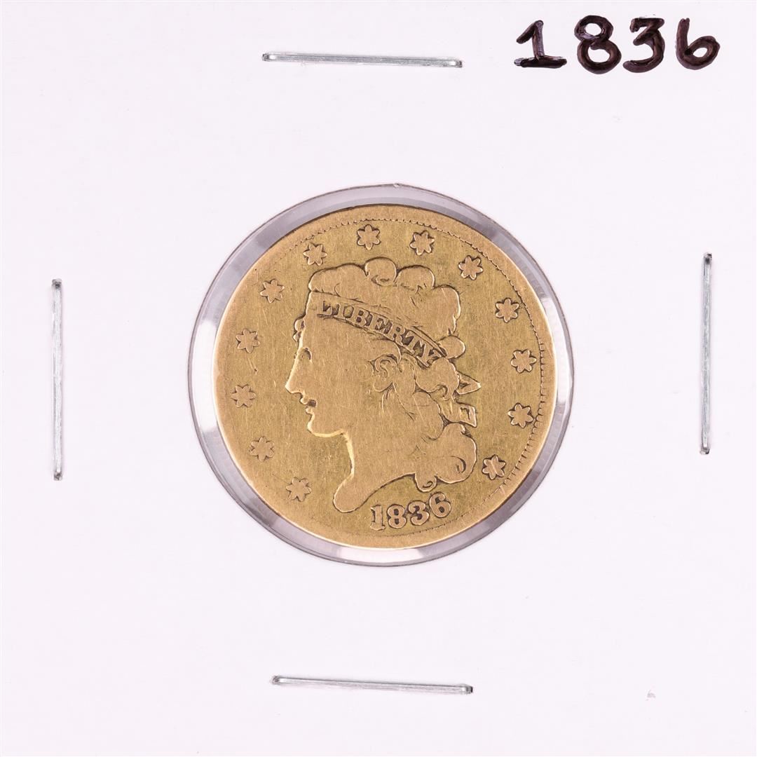 One 1836 $5 Classic Head Half Eagle Gold Coin.