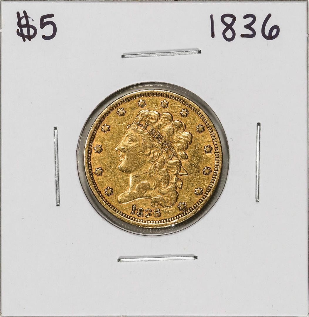 One 1836 $5 Classic Head Half Eagle Gold Coin.