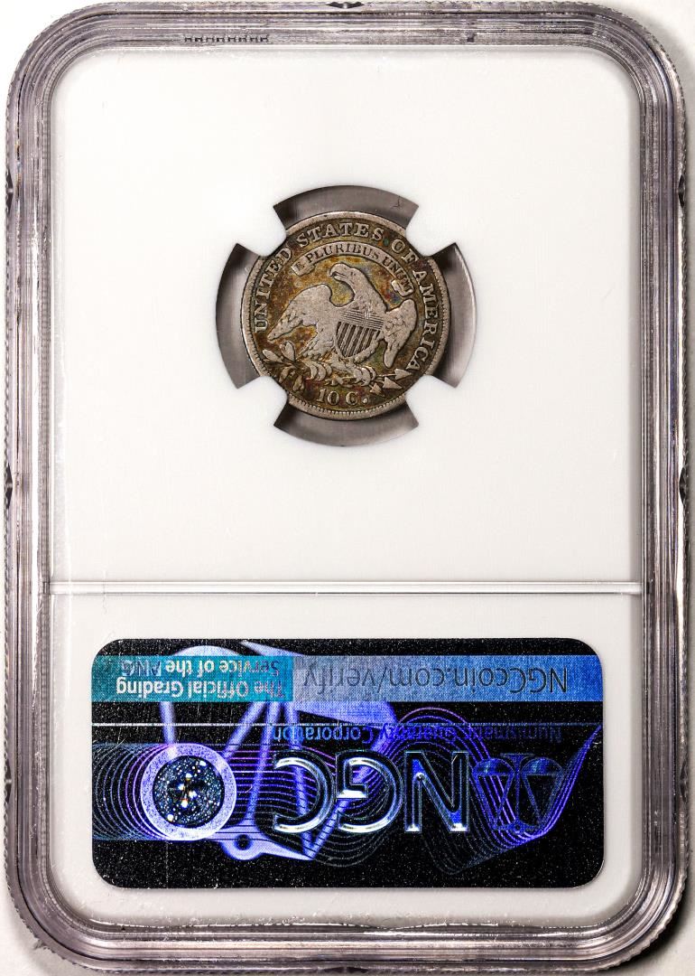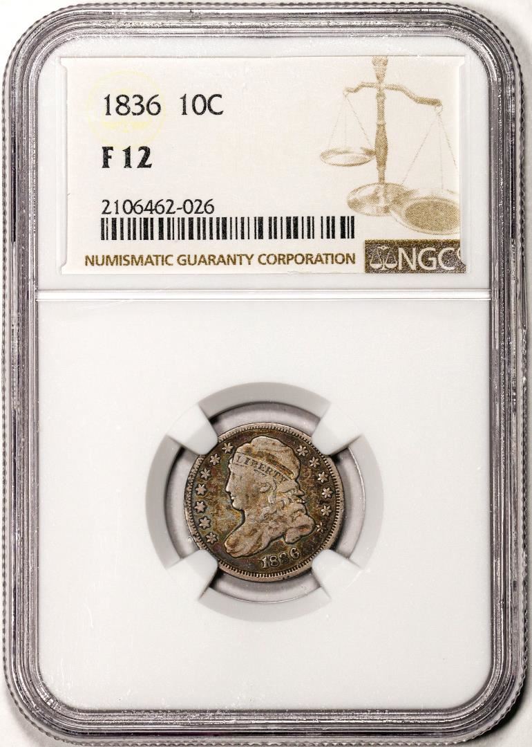 One 1836 Capped Bust Dime Coin NGC F12 Amazing Color. NGC Certified.