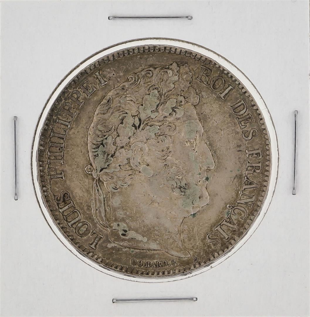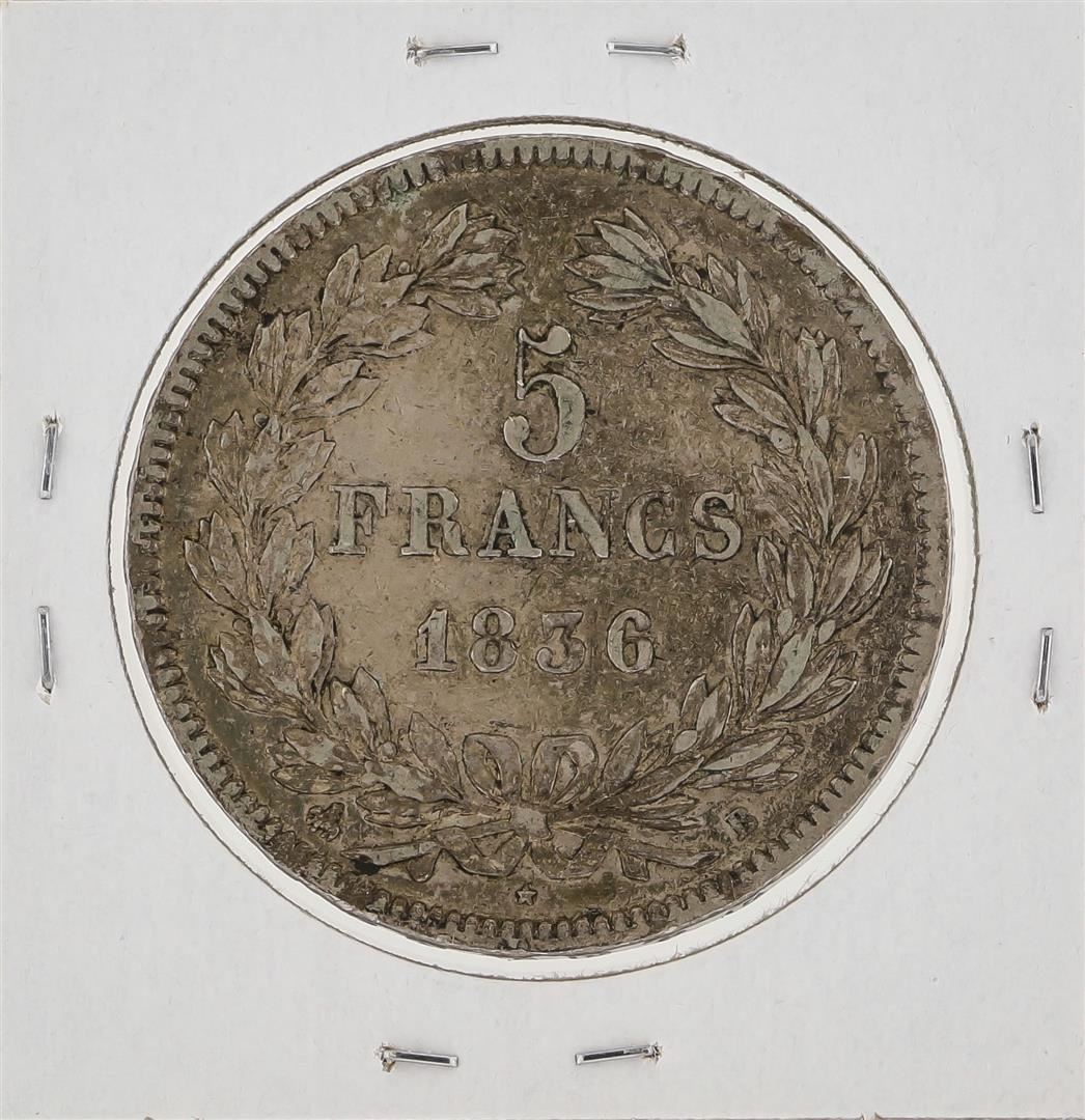 One 1836 France 5 Francs Silver Coin.