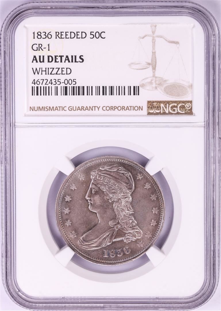 One 1836 Reeded Edge Capped Bust Half Dollar Coin GR-1 NGC AU Details. NGC Certified.