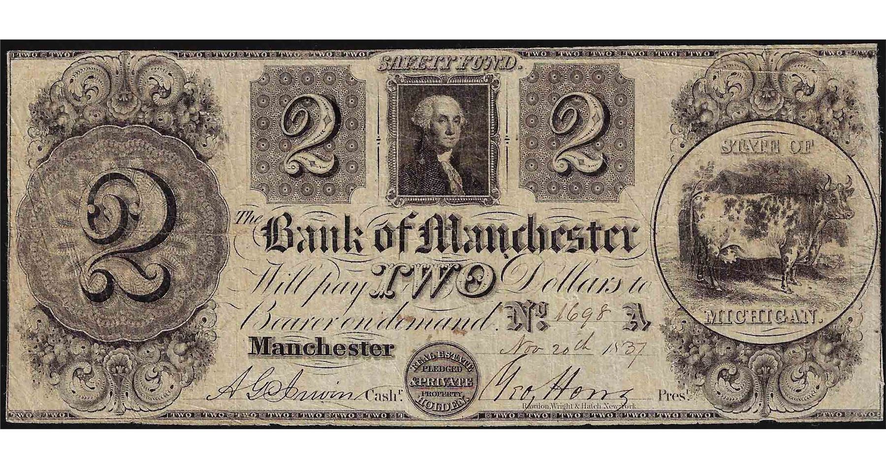 One 1837 $2 The Bank of Manchester Note.