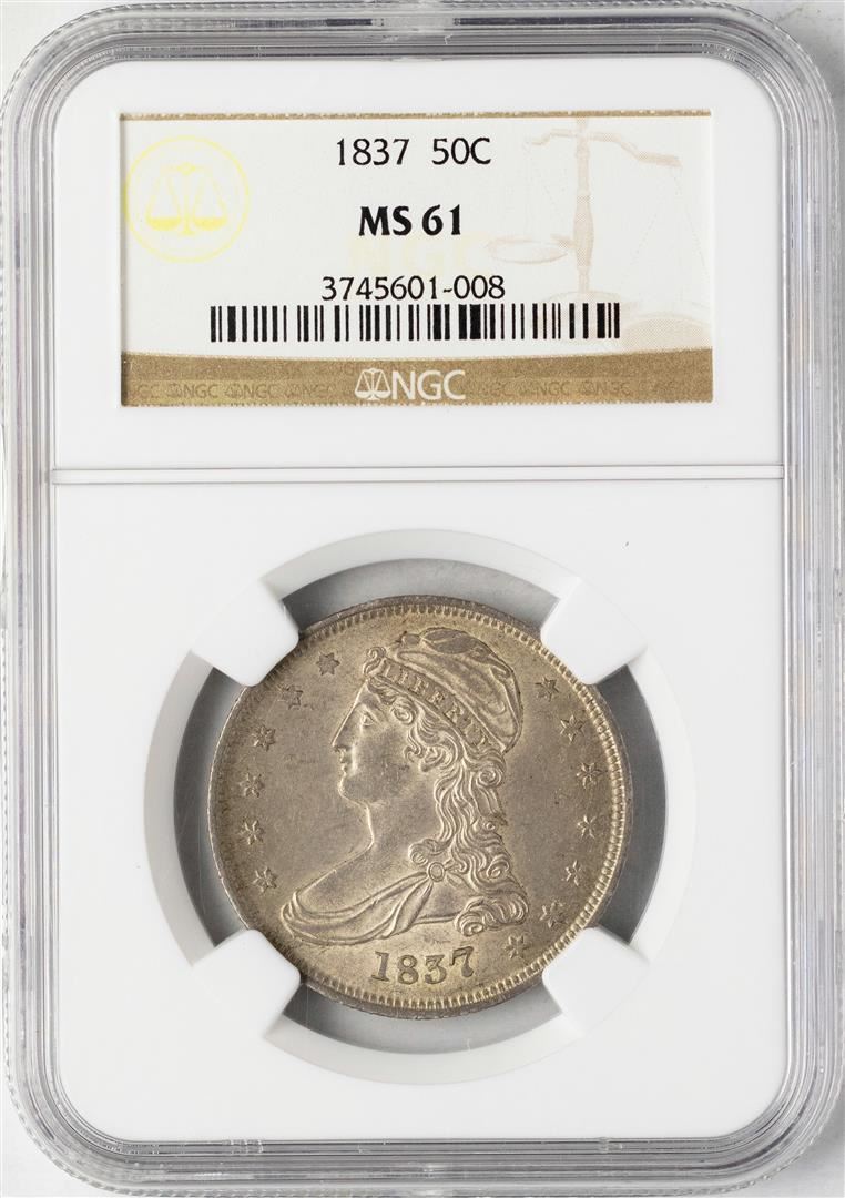 One 1837 Capped Bust Half Dollar Coin NGC MS61. NGC Certified.