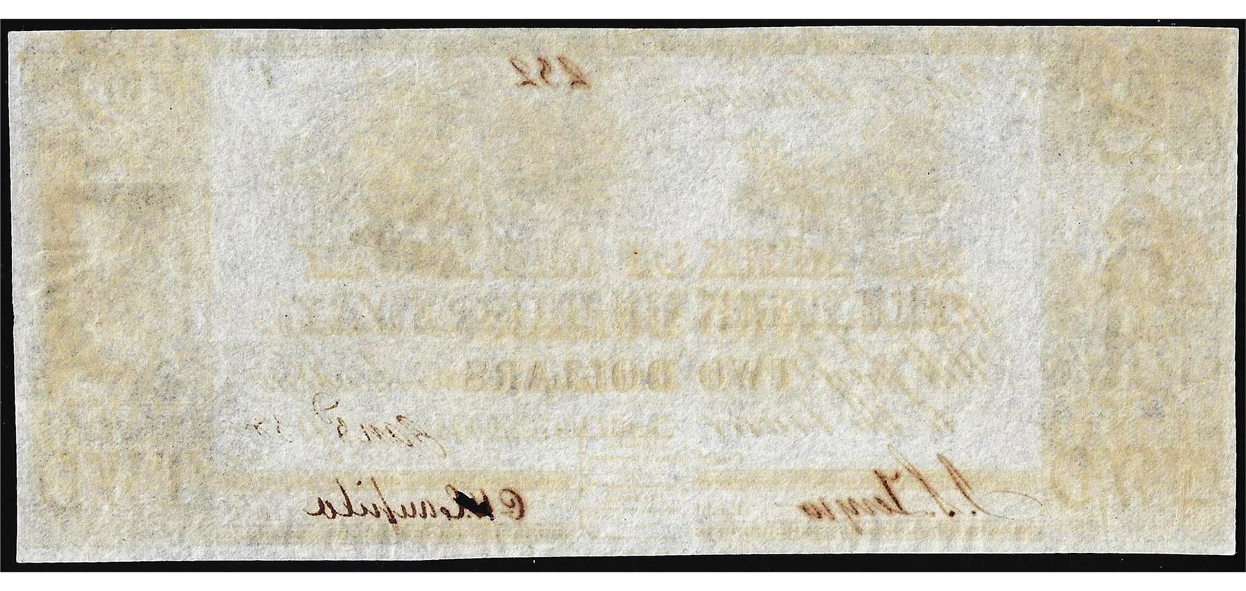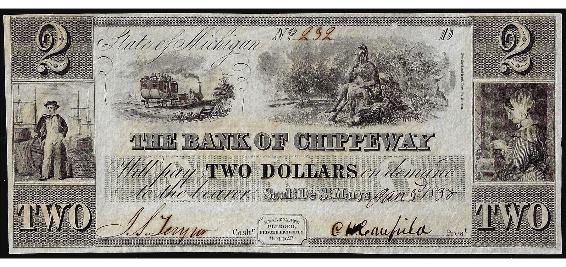 One 1838 $2 The Bank of Chippeway State of Michigan Obsolete Note.