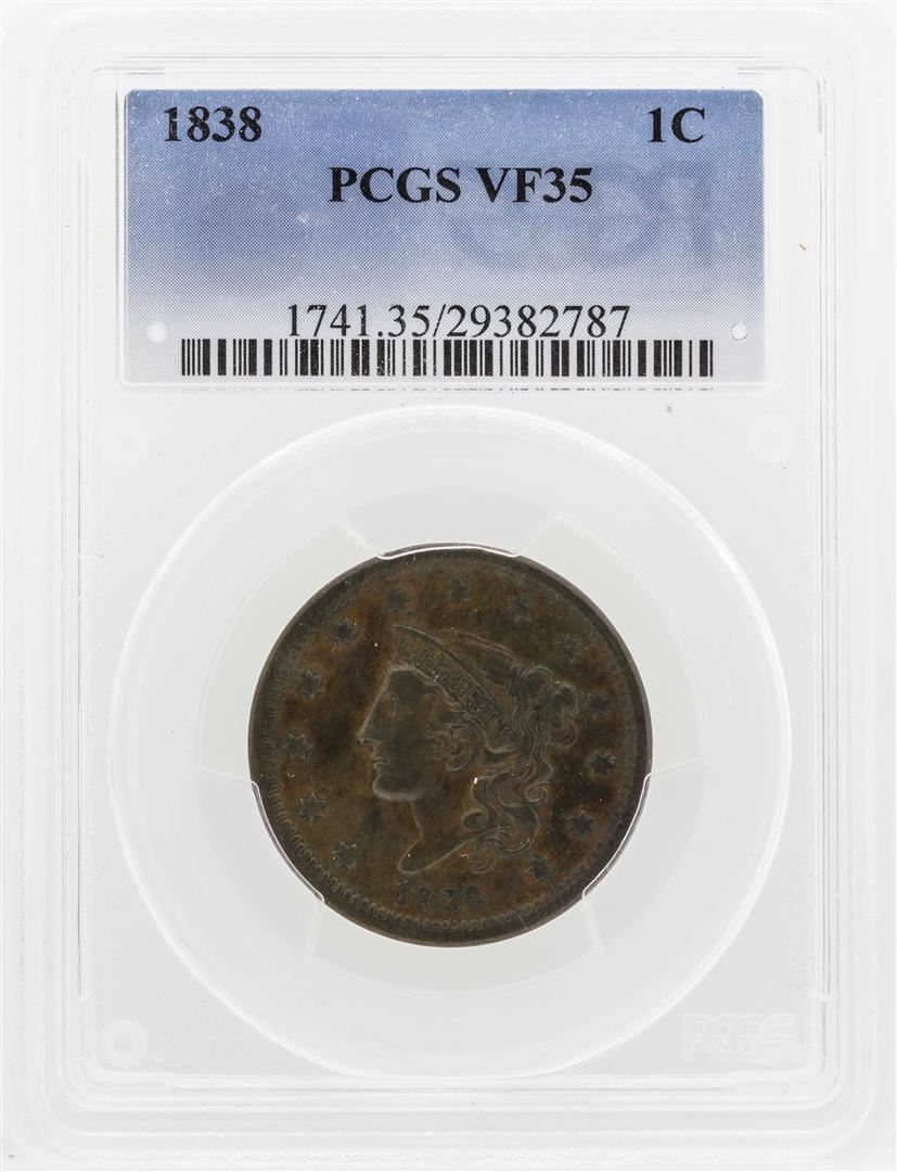 One 1838 Cornet Head Cent PCGS VF35. PCGS Graded.