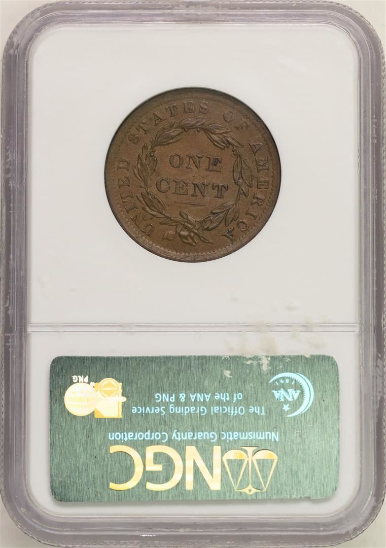 One 1838 Coronet Hair Large Cent Coin NGC MS62BN. NGC Certified.