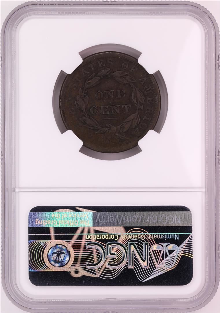 One 1838 Coronet Head Large Cent Coin NGC VF Details. NGC Certified.