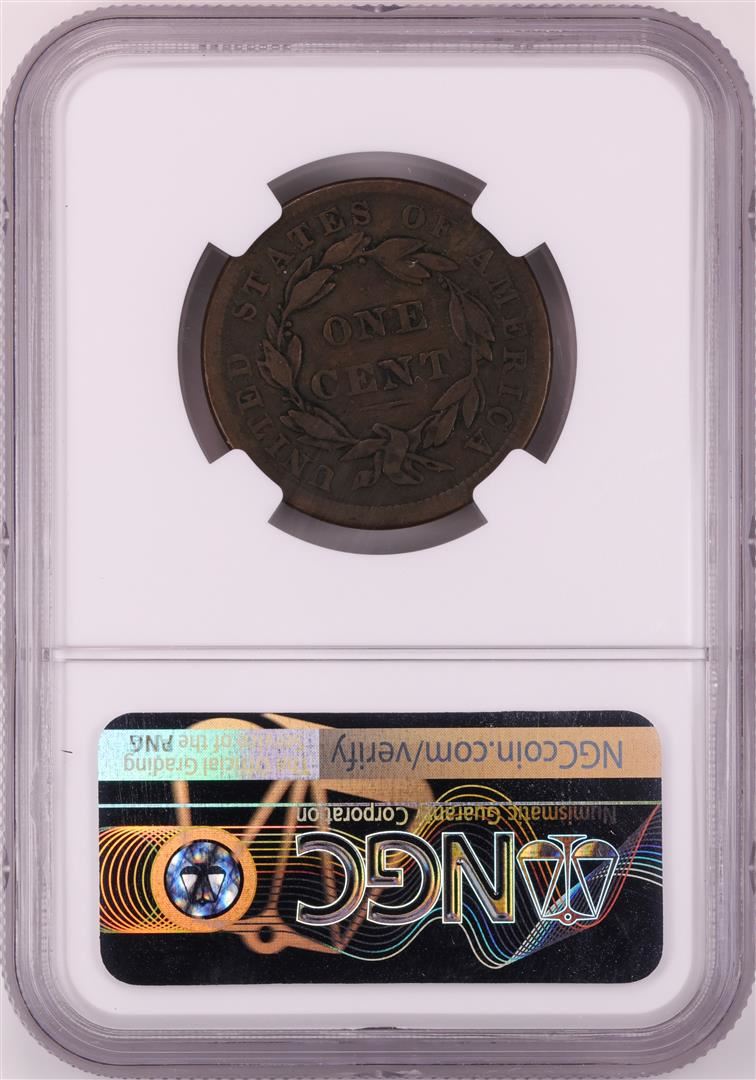 One 1839/6 Head of 36 N-1 Coronet Large Cent Coin NGC F12 BN. NGC Certified.