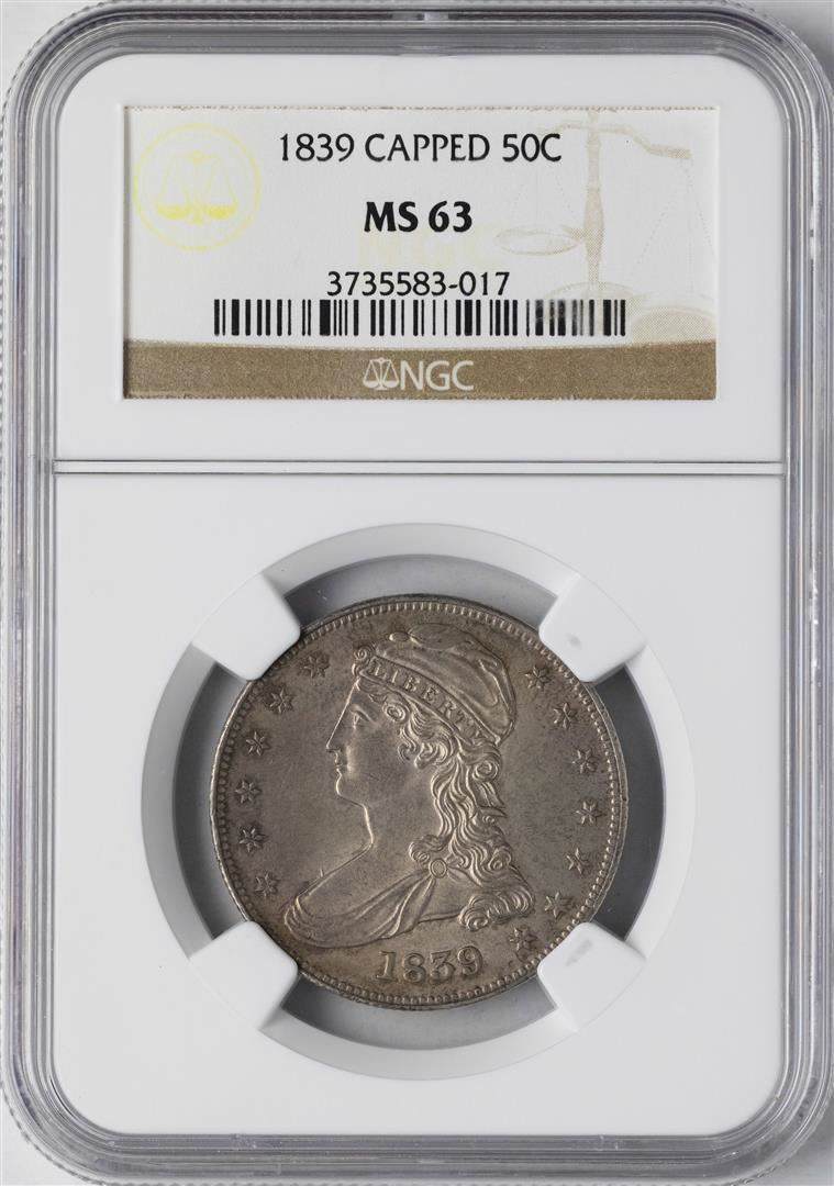 One 1839 Capped Bust Half Dollar Coin NGC MS63. NGC Certified.