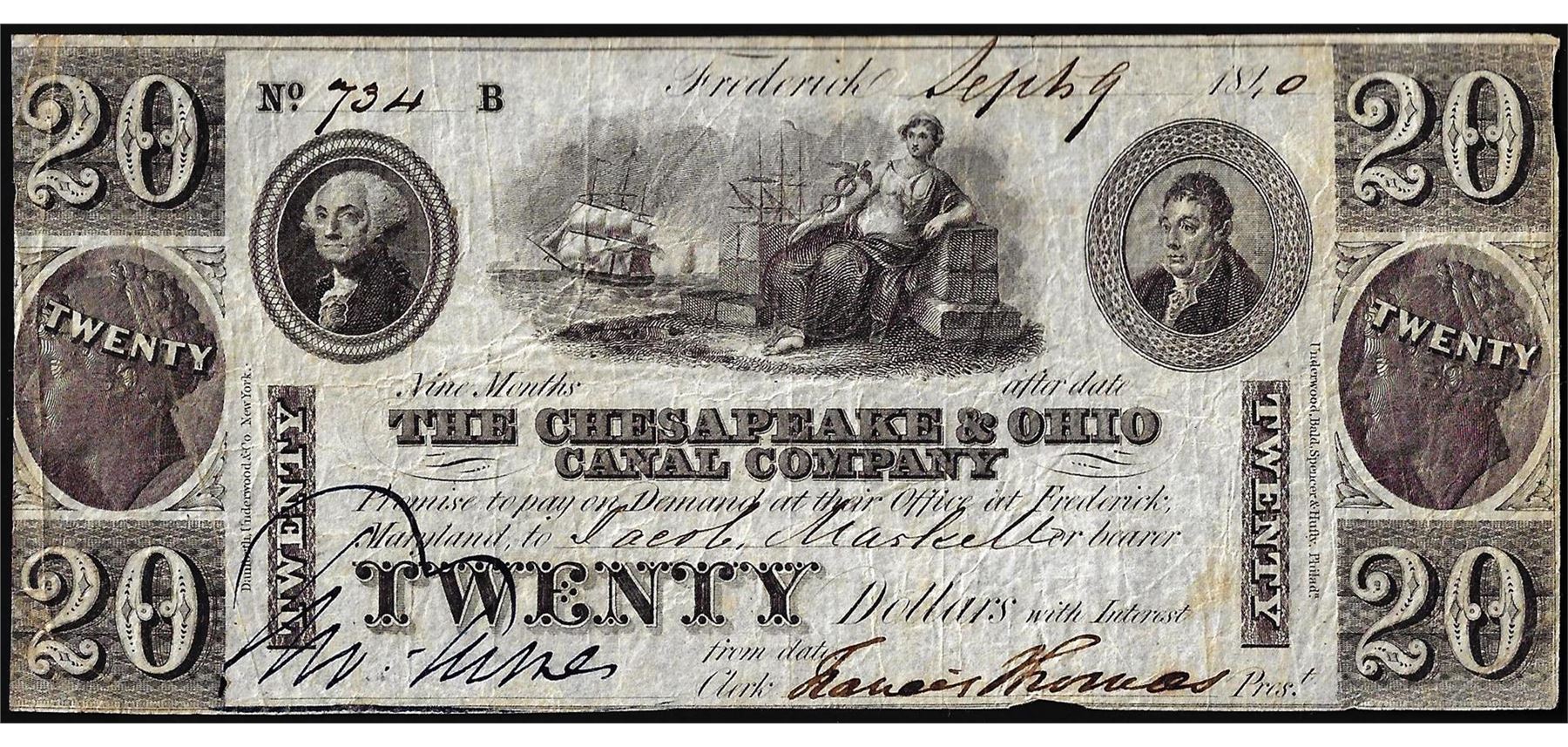 1840 $20 The Chesapeake & Ohio Canal Company Obsolete Note
