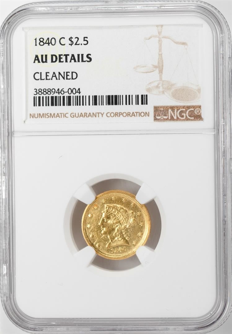 One 1840-C $2 1/2 Liberty Head Quarter Eagle Gold Coin NGC AU Details. NGC Certified.