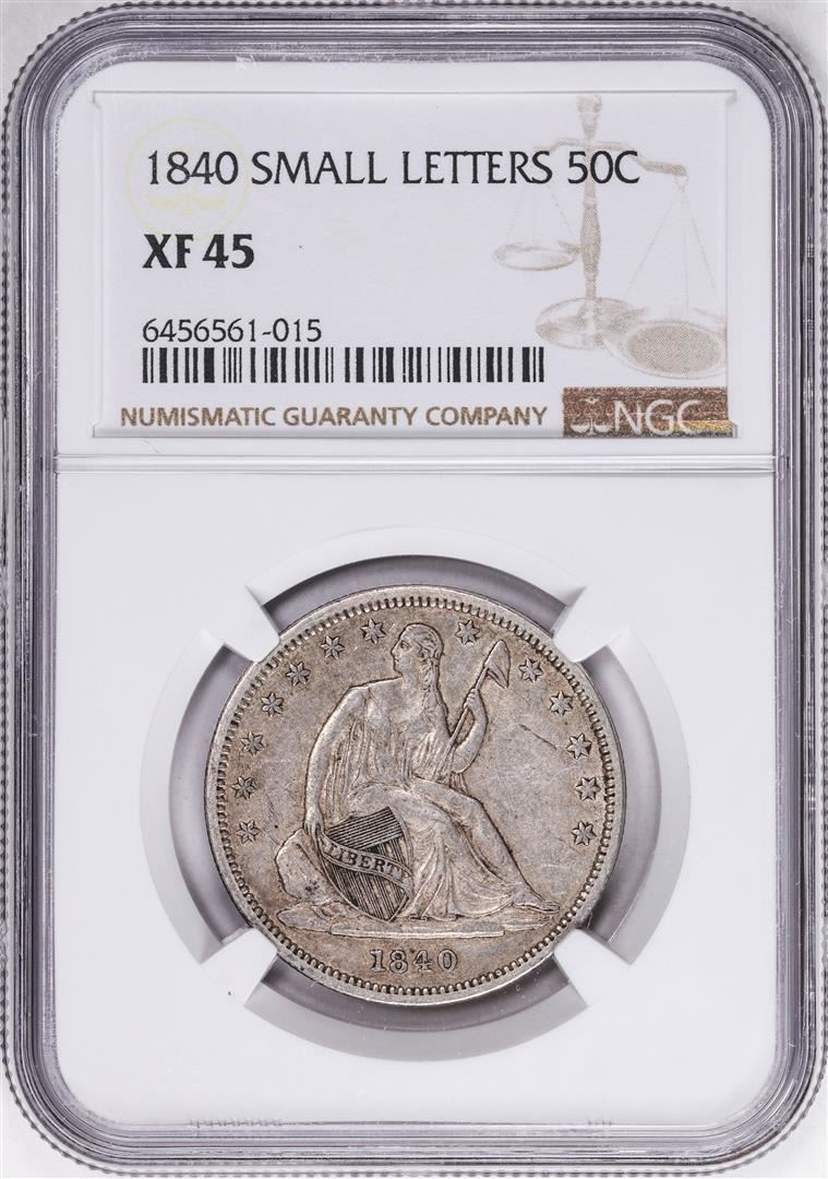 One 1840 Small Letters Seated Liberty Half Dollar Coin NGC XF45. NGC Certified.