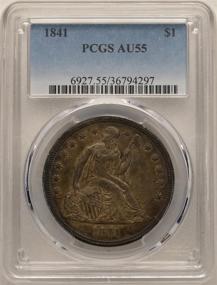 One 1841 $1 Seated Liberty Silver Dollar Coin PCGS AU55. PCGS Graded.