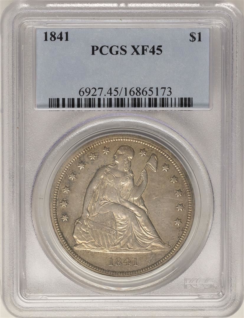One 1841 $1 Seated Liberty Silver Dollar Coin PCGS XF45. PCGS Graded.