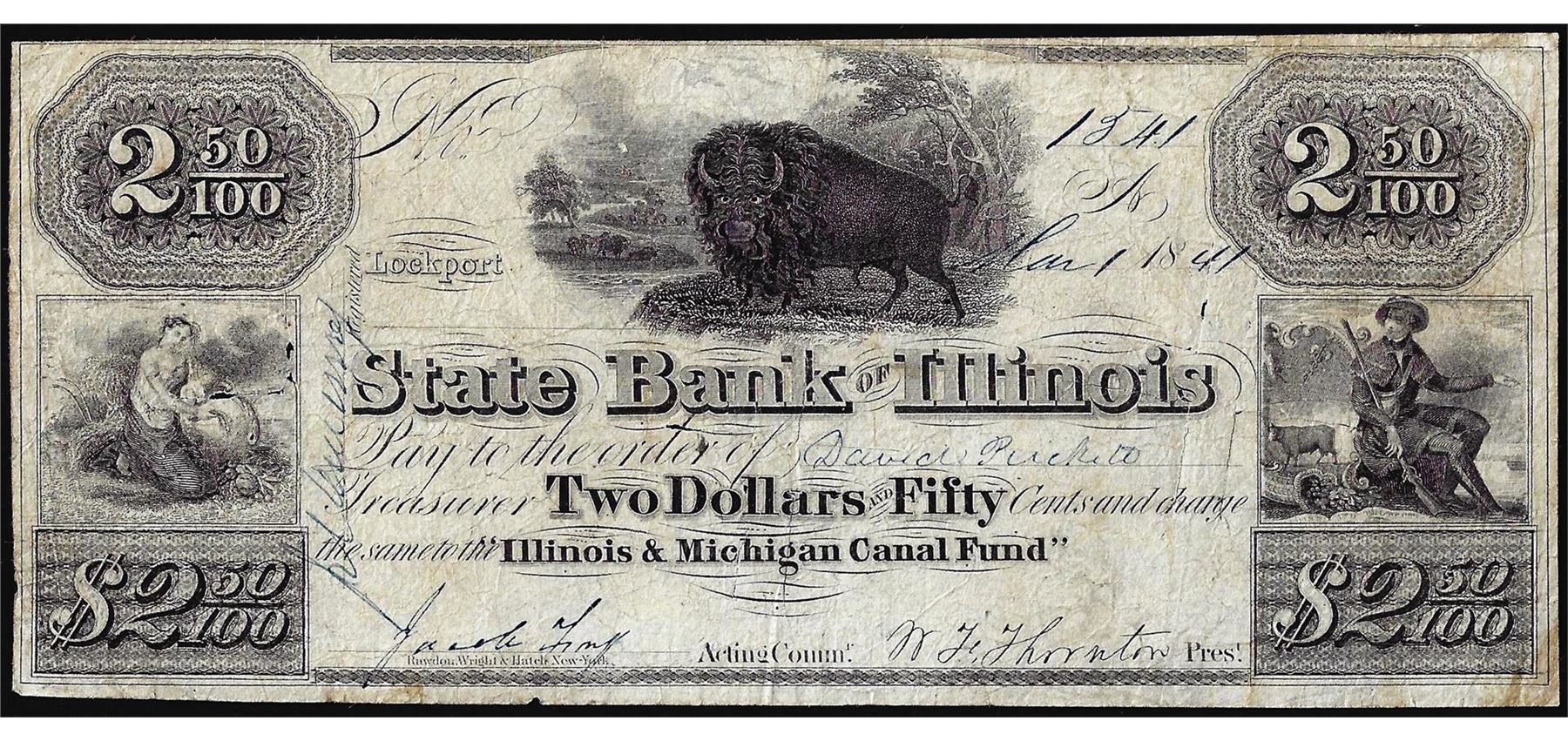 One 1841 $2.50 State Bank of Illinois Lockport Obsolete Banknote.