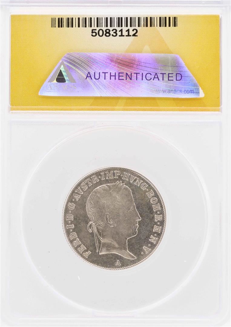 One 1841-A Austria Ferdinand I AR 20 Kreuzer Coin ANACS AU53. ANACS Certified.