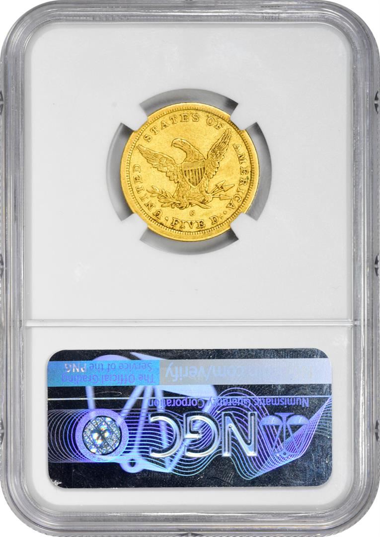 One 1841-C $5 Liberty Head Half Eagle Gold Coin NGC AU53. NGC Certified.