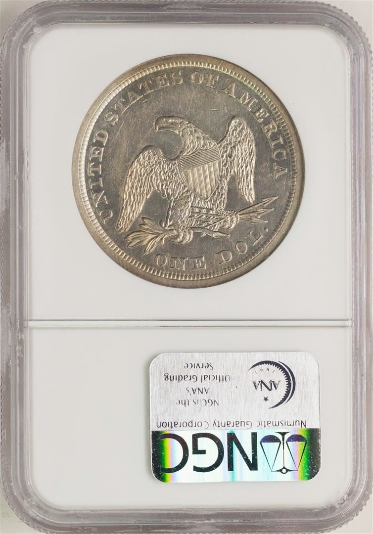 One 1842 $1 Seated Liberty Silver Dollar Coin NGC AU58. NGC Certified.