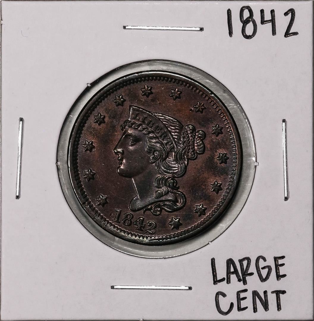 One 1842 Coronet Head Large Cent Coin.