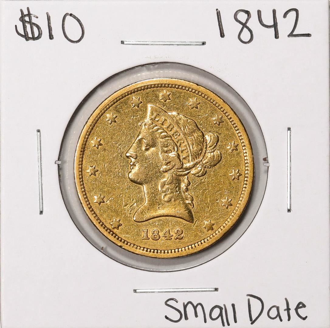 One 1842 Small Date $10 Liberty Head Eagle Gold Coin.