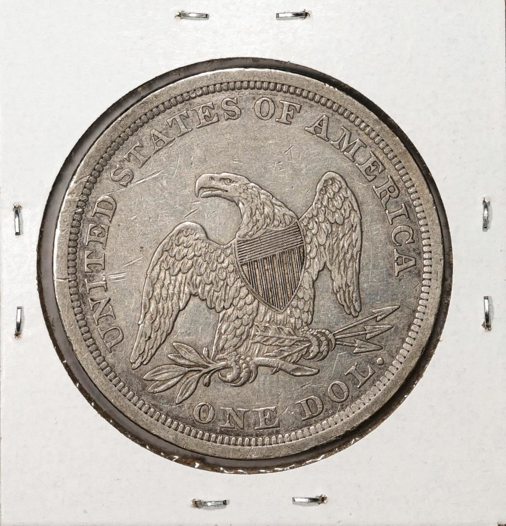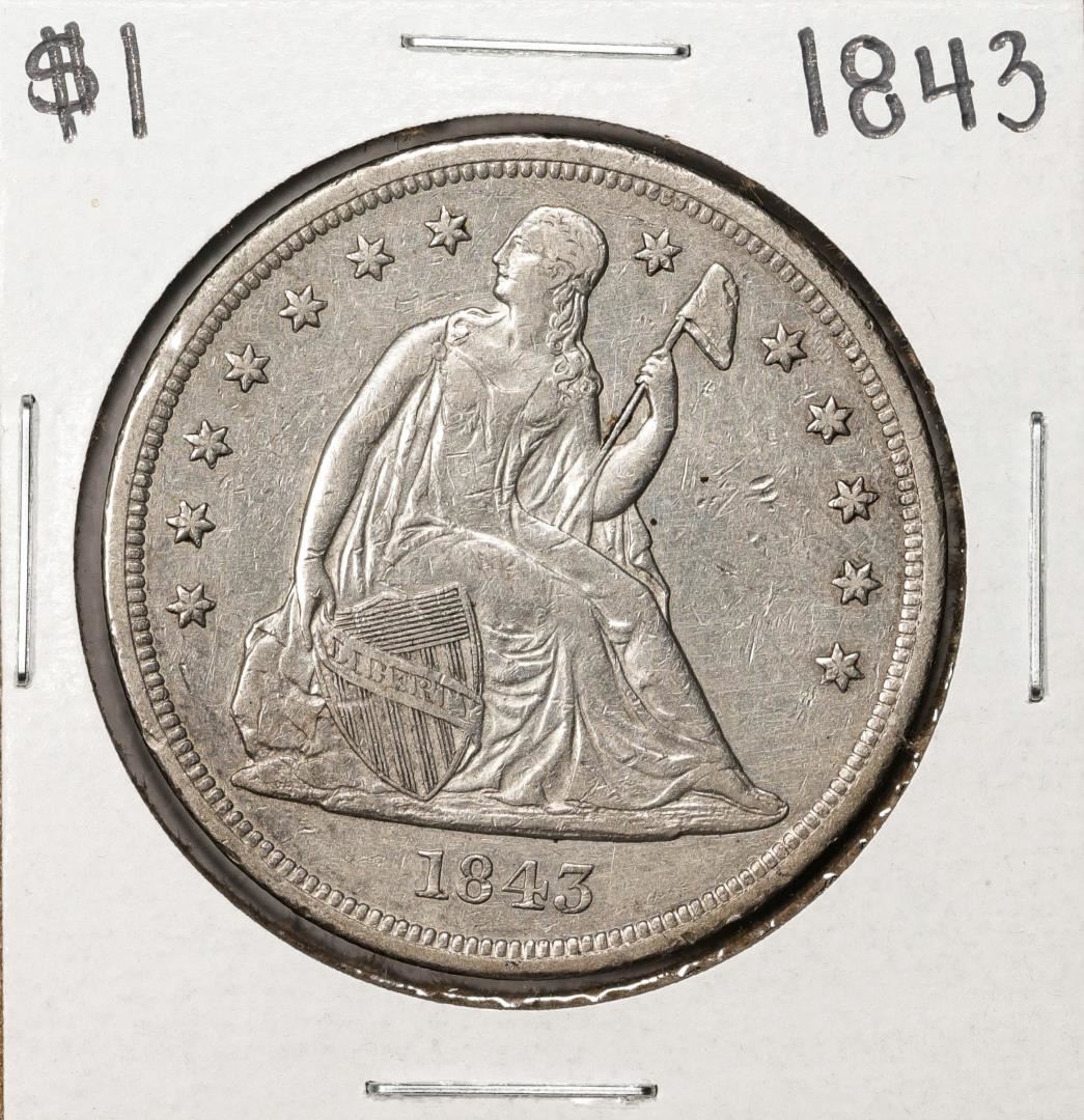 One 1843 $1 Seated Liberty Silver Dollar Coin.