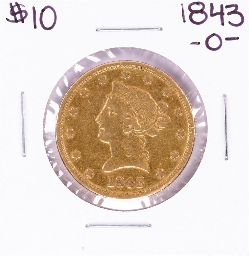 One 1843-O $10 Liberty Head Eagle Gold Coin.
