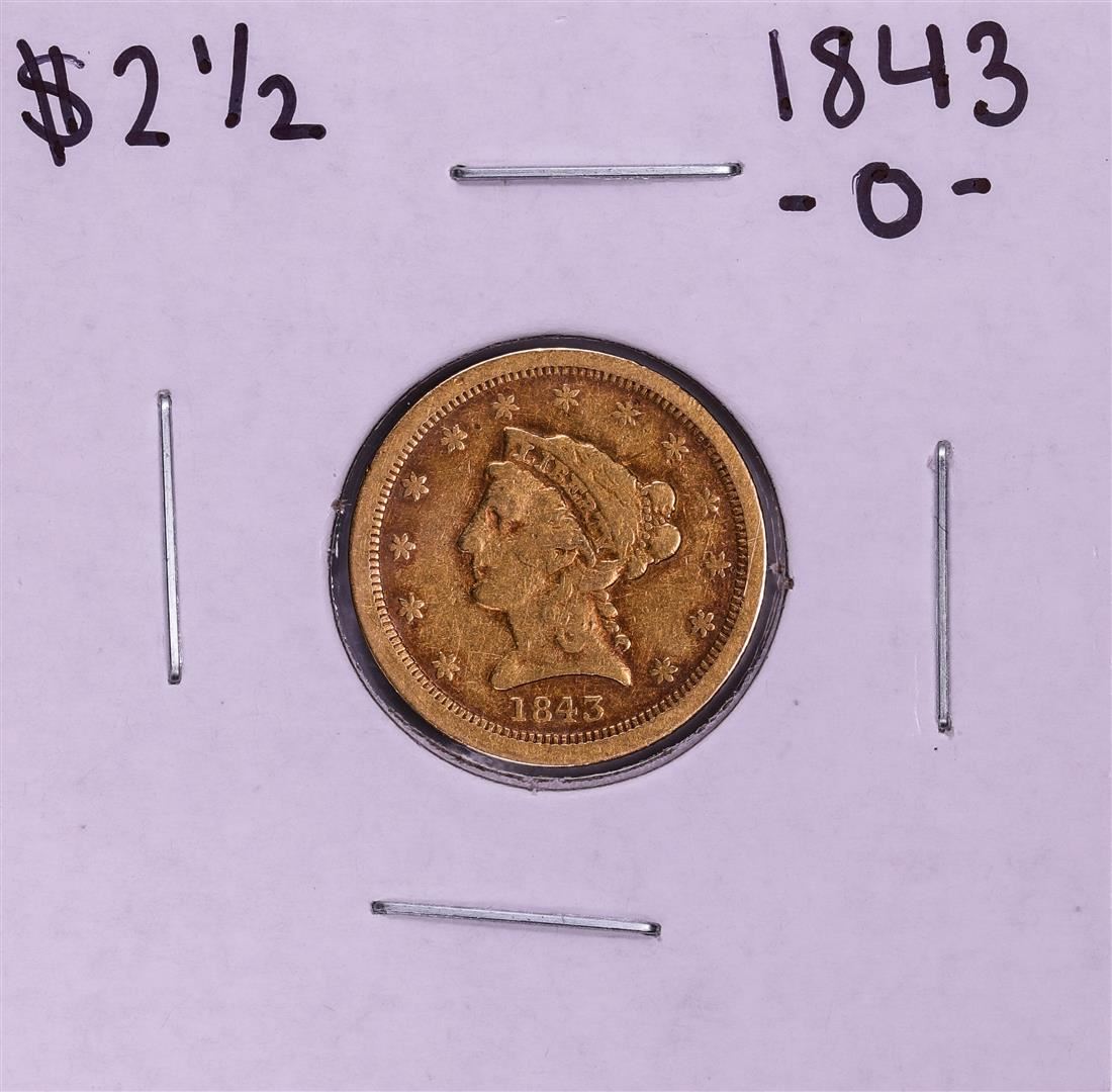One 1843-O Small Date $2 1/2 Liberty Head Quarter Eagle Gold Coin.