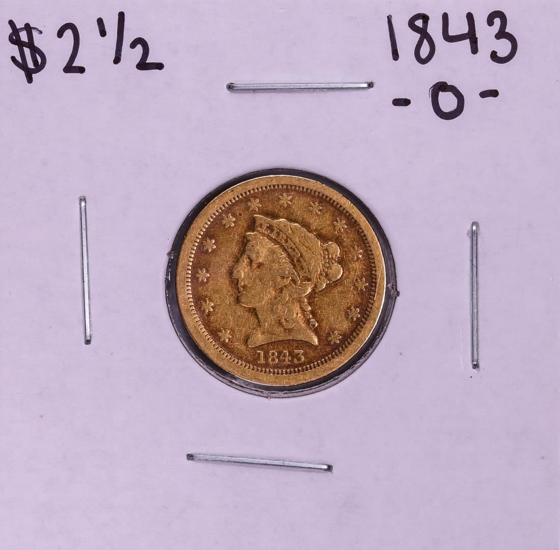 One 1843-O Small Date $2 1/2 Liberty Head Quarter Eagle Gold Coin.