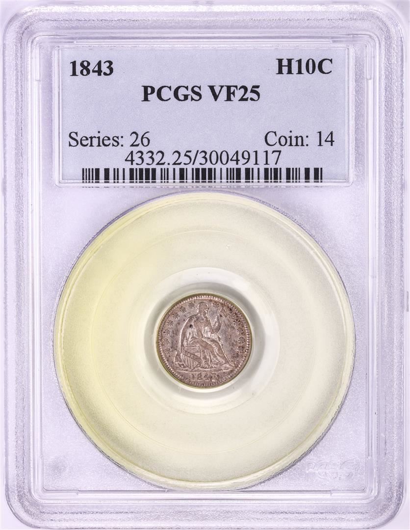 One 1843 Seated Liberty Half Dime Coin PCGS VF25. PCGS Graded.