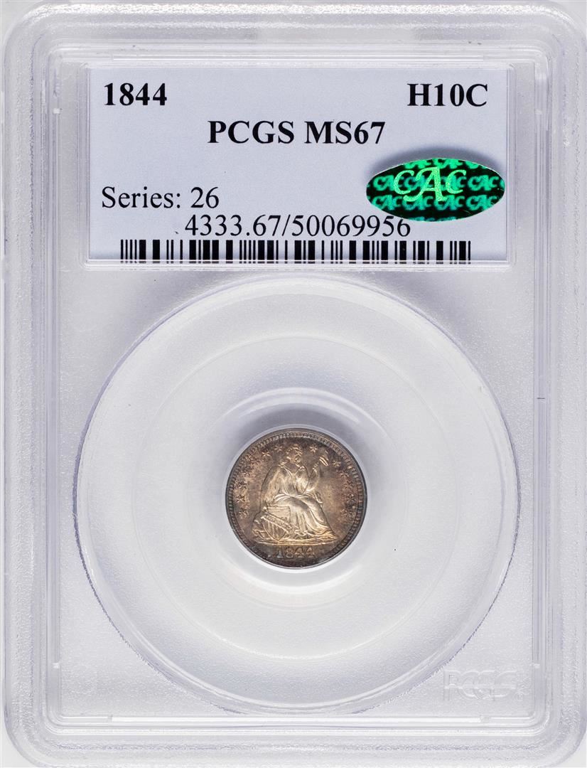 One 1844 Seated Liberty Half Dime Coin Arrows PCGS MS67 CAC Amazing Toning. PCGS Graded.