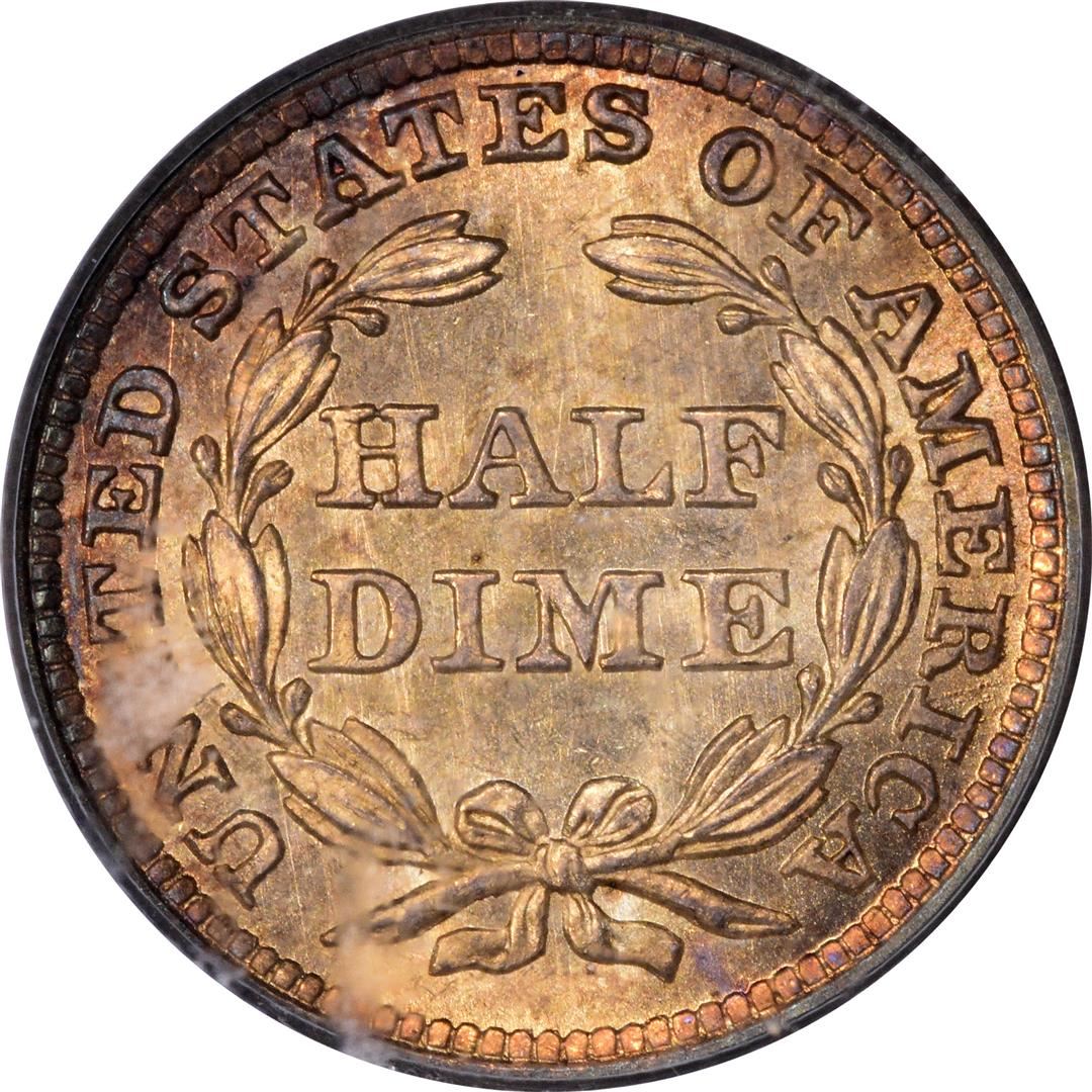 One 1844 Seated Liberty Half Dime Coin Arrows PCGS MS67 CAC Amazing Toning. PCGS Graded.