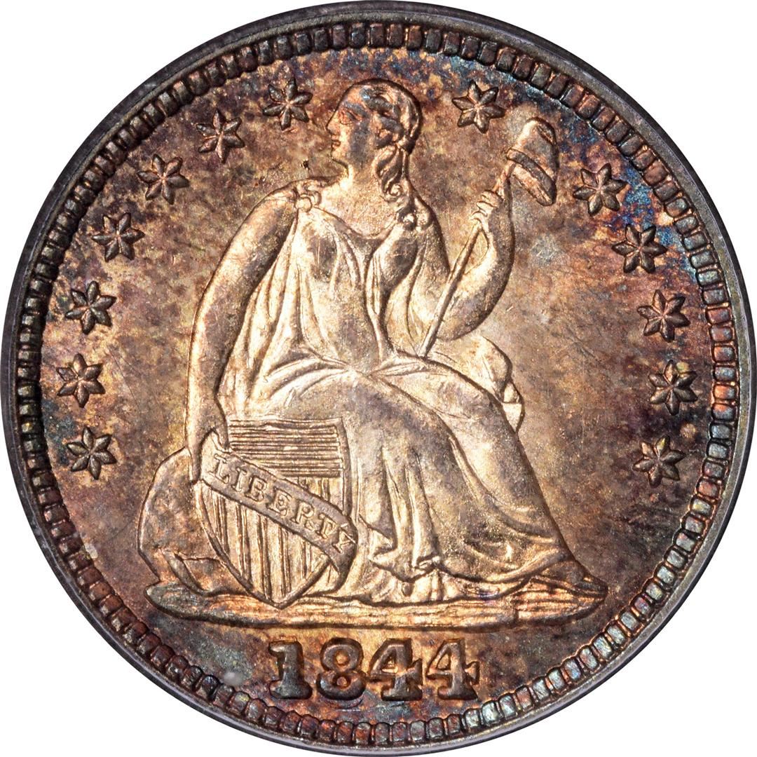 One 1844 Seated Liberty Half Dime Coin Arrows PCGS MS67 CAC Amazing Toning. PCGS Graded.