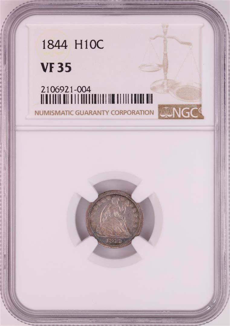One 1844 Seated Liberty Half Dime Coin NGC VF35. NGC Certified.
