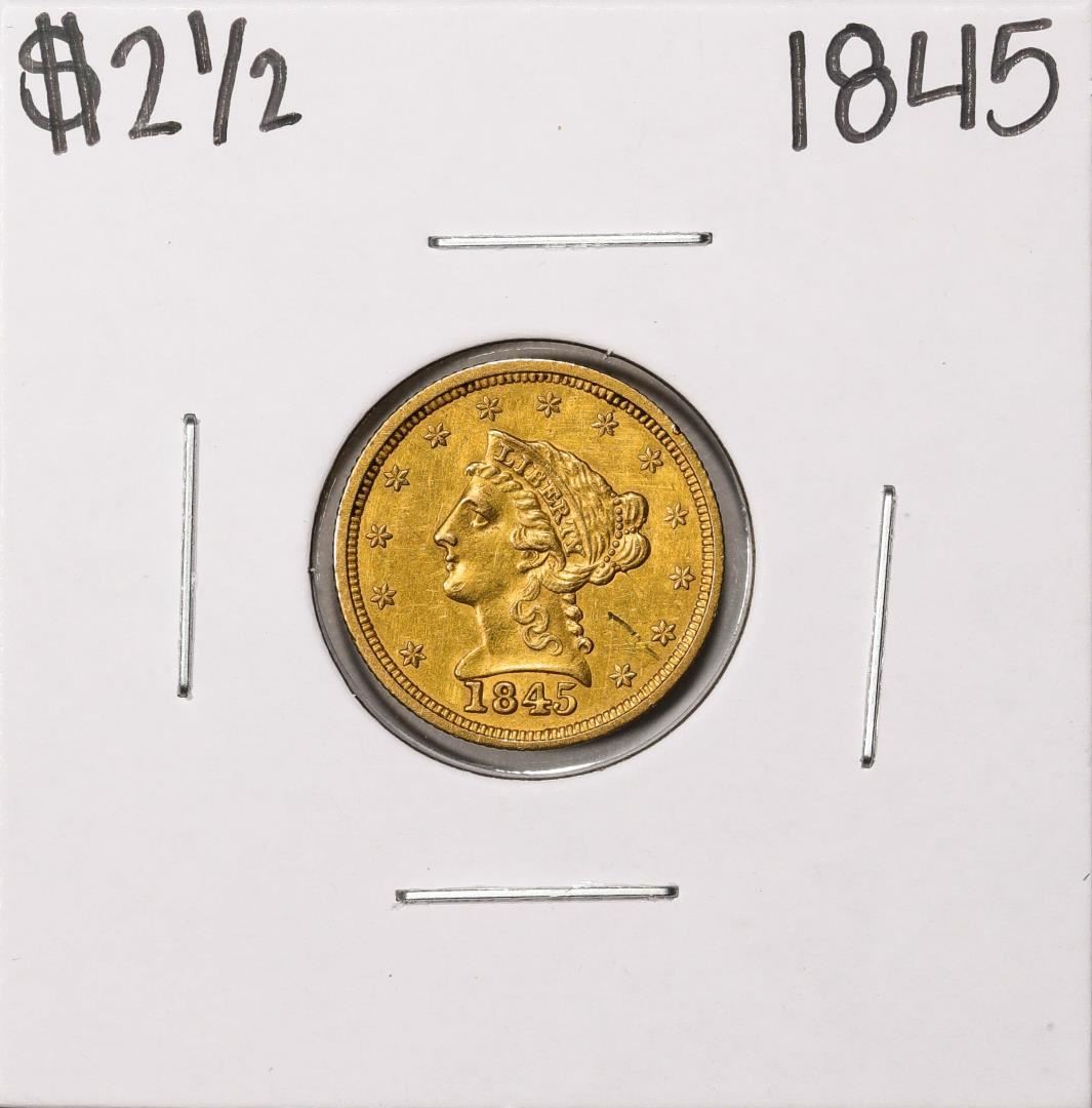 One 1845 $2 1/2 Liberty Head Quarter Eagle Gold Coin.