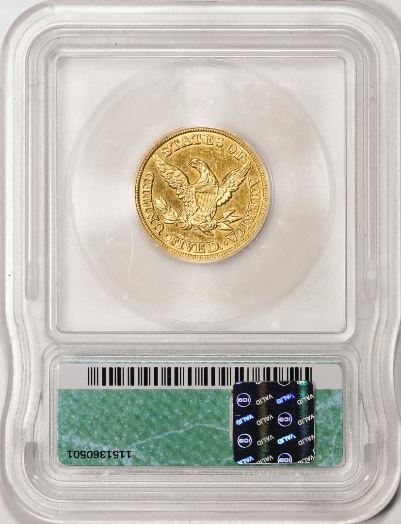 One 1845 $5 Liberty Head Half Eagle Gold Coin ICG MS62. ICG Certified.