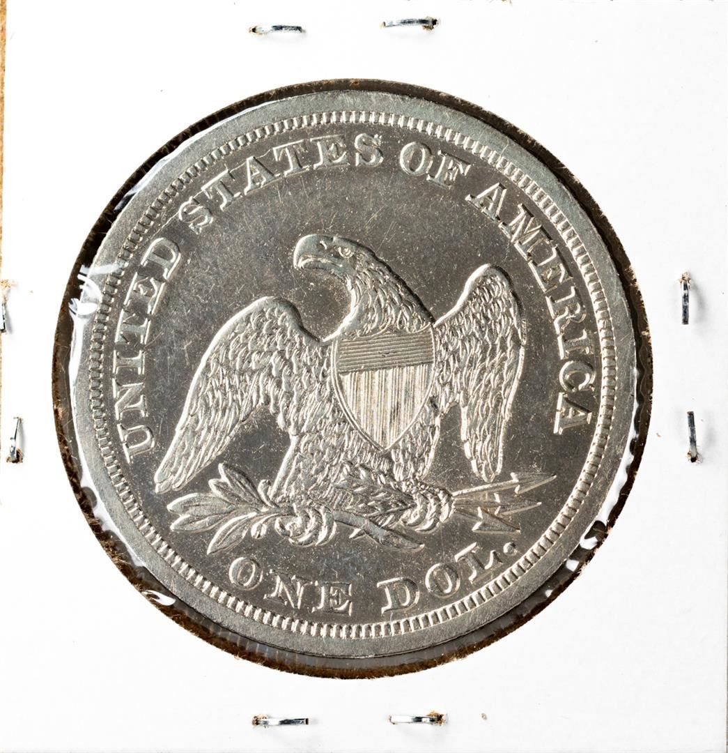 One 1846 $1 Seated Liberty Silver Dollar Coin.