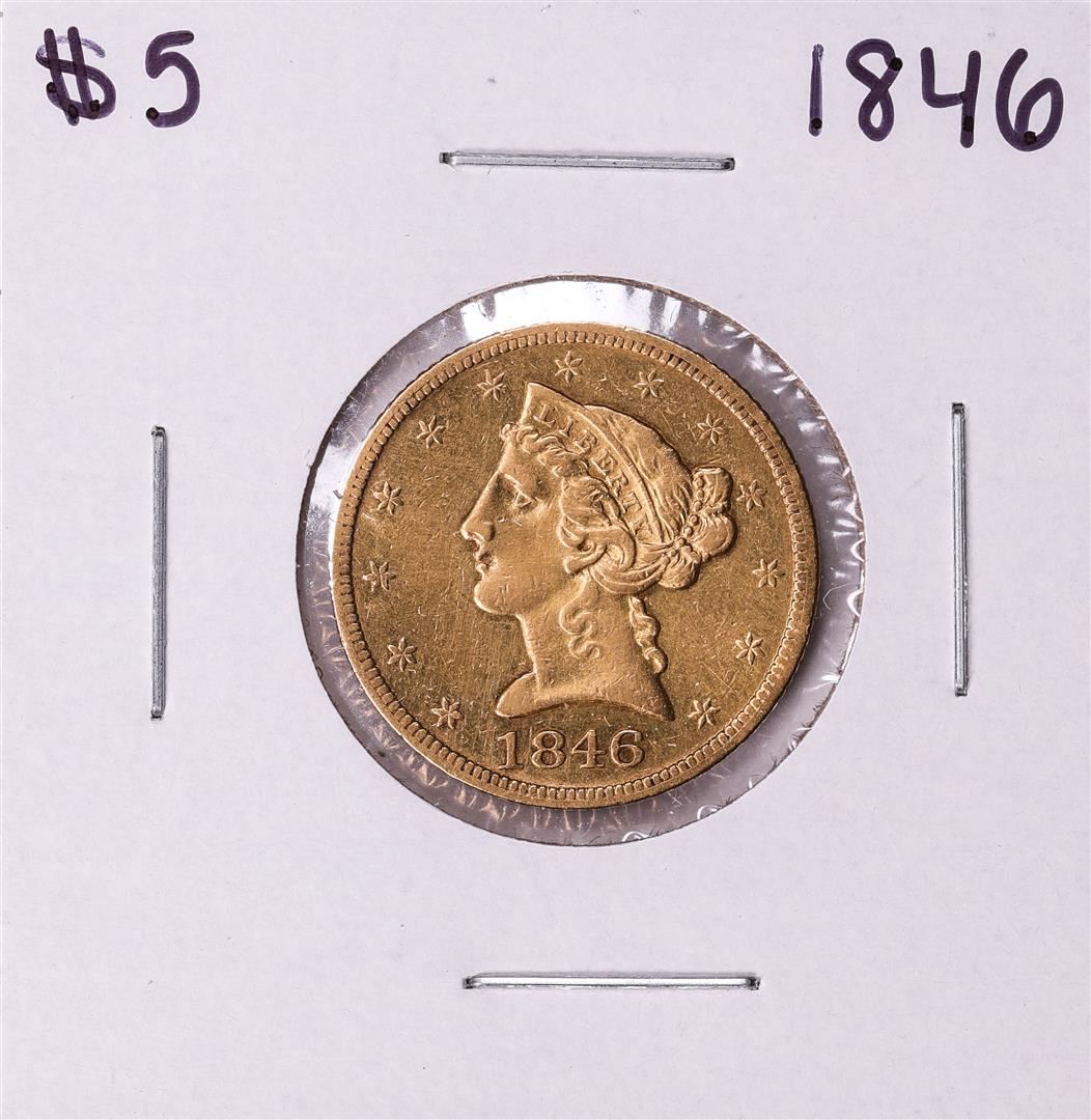 One 1846 $5 Liberty Head Half Eagle Gold Coin.