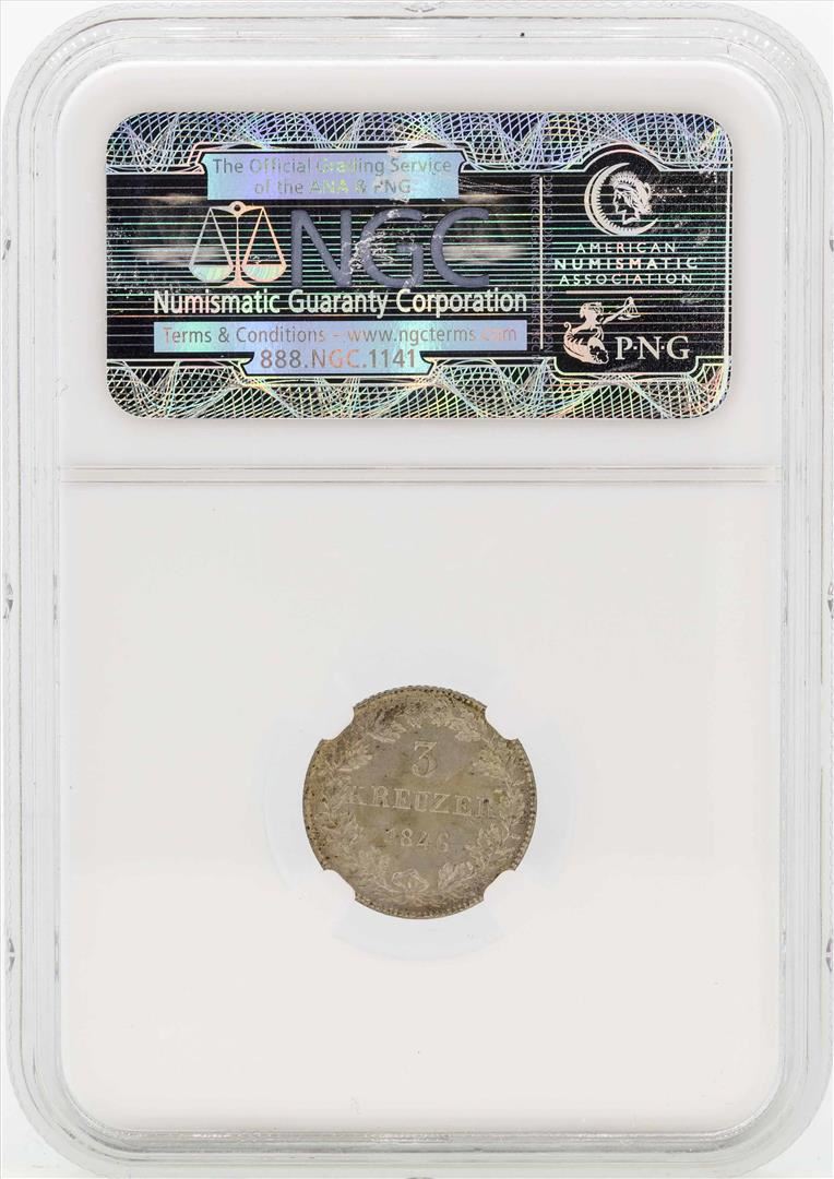 One 1846 Germany 3 Kreuzer Coin NGC MS66. NGC Certified.