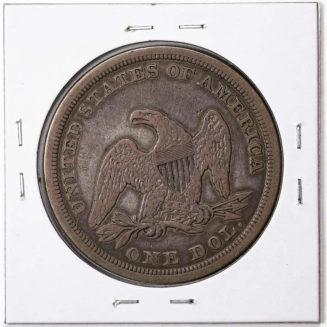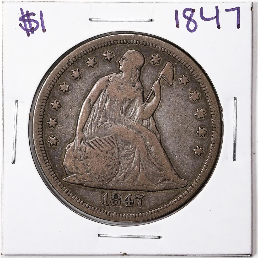 One 1847 $1 Seated Liberty Silver Dollar Coin.
